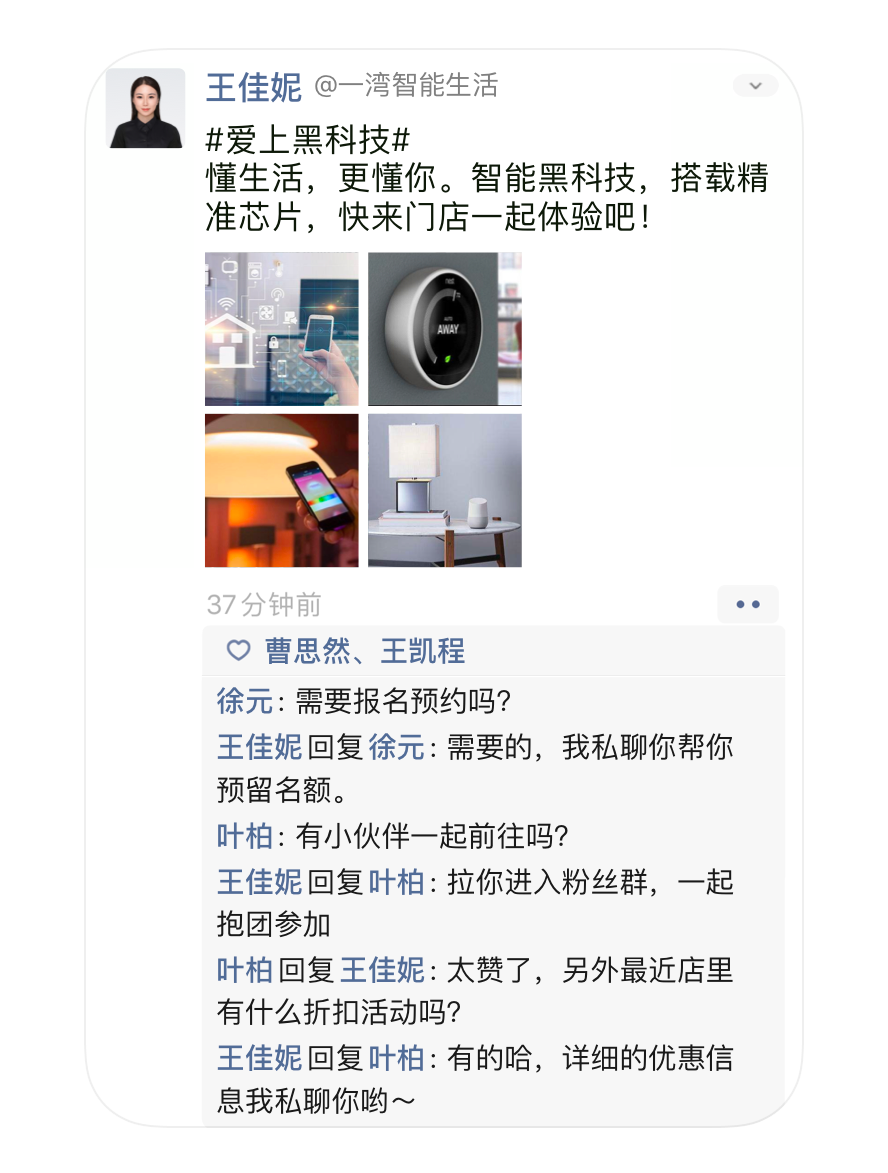 有线下门店的企业可以把企业微信「联系我二维码」印刷在海报上、工卡上。